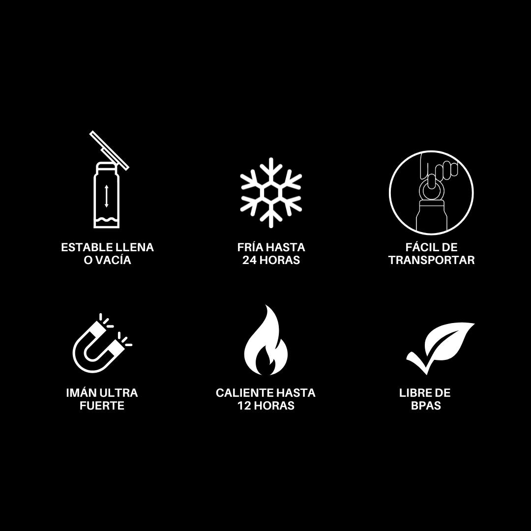 Su diseño térmico de acero inoxidable conserva la temperatura de tus bebidas, evitando derrames para que te mantengas hidratado y disfrutes cada sorbo.